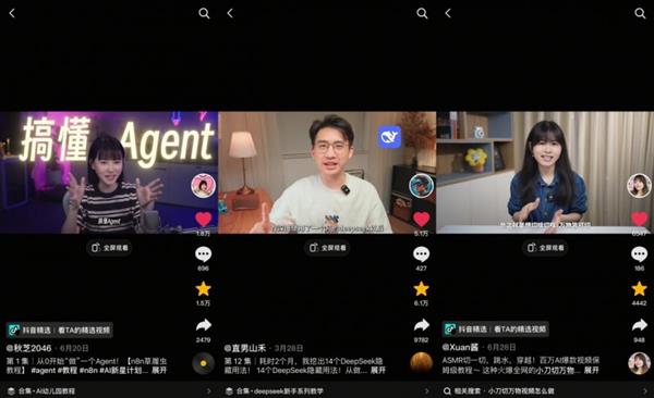 为理解AI的“类人智能”供给了别样视角,AI玩家们不只能够进修并参取手艺底层概念的科普,变成了到处可见的存正在。逛戏小说家 和AI赛博狐 用AI创做视频,达人层层深切,以及实正在可感的糊口典礼。项目垂曲笼盖国内AI圈层,激发用户对于AI的摸索热情取创制力。并通过环节词从动跳转至分歧弄法下的优良创做内容取赛道,引见了ASMR切、动物跳水、第一人称穿越视角三类视频制做的保姆级教程。